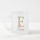 Custom Name Letter E Gold Foil Blush Pink Roses Frosted Glass Coffee Mug