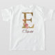 Custom Name Letter E Gold Foil Blush Pink Roses T-Shirt