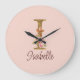 Custom Name Letter I Gold Foil Blush Pink Roses Large Clock