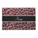 Modern and trendy personalized custom name light pink glitter leopard spots pattern (animal print) with a black diamonds stripe (not real diamonds) with hearts and dots personalized with your name gifts or monogram gifts or your initials. Pretty girly leopard print gift ideas. Ideal for birthdays and weddings.