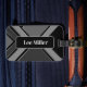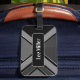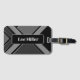 Custom name luggage tag is shown in a black and grey tone's abstract art print and a sample name shown, customize and change the sample text to yours.