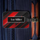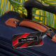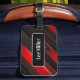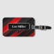 Custom name luggage tag is shown in a black and red color abstract art print and a sample name shown, customize and change the sample text to yours with this template.
