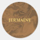 Custom name marble brown texture classic round sticker