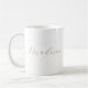 Simple white minimalist coffee mug personalized with name in light golden brown delicate cursive handwriting / script lettering. Shown is the editable name, Madison. To change the lettering color and/or style, or to add additional text or images, use the Design Tool. (Click "Personalize this template", then "Edit using Design Tool".) Need help? Send us a message. Designed by 368MyName.