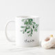 This Christmas coffee mug is decorated with watercolor mistletoe and Merry Christmas in stylish typography.