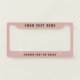 A modern minimalist pink personalized license plate frame with custom text. Personalize with your details to create your own unique elegant pink business license plate. Click on the "Edit using Design Tool" to customize even further with colors, font etc.