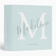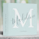 Your custom name, monogram, and additional text below and on spine in modern script calligraphy combined with chic typography in this trendy chic personal design on a 3 ring binder in aqua blue.