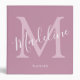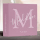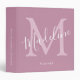 Your custom name, monogram, and additional text below and on spine in modern script calligraphy combined with chic typography in this trendy chic personal design on a 3 ring binder in cassis pink.