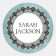 Custom Name Monogram Blue Gray Flower Petals Classic Round Sticker