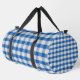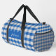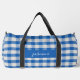 This unique duffel bag design is whimsical and stylish. The background consists of an abstract a classic blue background. The front features your custom name or short text in stylish white script on a matching blue band. All colors in this design can be customized and you may further personalize the bag with your choice of font type in the design tool area.