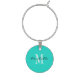 Custom name monogram elegant turquoise blue wine charm