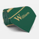 A sophisticated and personalized gift for the man in your life. This elegant necktie features a classic, rich forest green background accented with stylish, diagonal gold stripes and a double-line border. The tie is customized with a large initial (e.g., 'W') and the full name (e.g., 'William') discreetly placed near the tip.