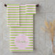 Custom Name Monogram Pastel Pink Green Striped Bath Towel Set