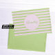 This design allows for the customization of the name and initial letter monogram over matching color pastel green and pink stripes. The back is the green stripe color. Customize the template text, remove one or the other template items or click customize to select font styles, sizes and colors you prefer.