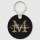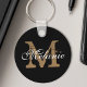 Create your own personalized black round keychain with your custom pretty calligraphy script name and monogram.