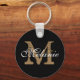Custom Name Monogram Pretty Classy Script Black Keychain
