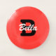 Custom name monogram red frisbee disc for pet dog. Funny novelty sports game accessory for animals and pet owners. Add your own text, name, monogram or quote. Typography design with bold text. Great for new pets.