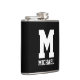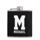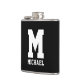 Custom name monogram small black and white Flask. Personalized Christmas and Birthday gift ideas for men. Add your own name initial. Alcohol / Drinking presents for dad, husband, co worker, colleague, sports coach, friend, boss, grandpa, employee etc. Custom background color with modern bold typography.