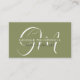 Custom Name Moss Sage Olive Green White Monogram Business Card