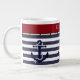 Custom Name Nautical Anchors Stripes Pattern Large Coffee Mug