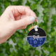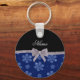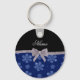 Custom name navy blue glitter flowers silver bow keychain