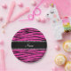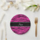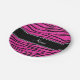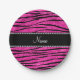 Custom name neon hot pink glitter zebra stripes paper plates