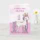 A sweet pink pony just like your niece is prancing with the number one! Gold looking details are woven in her mane and tail. Perfect card to wish your niece her 1st birthday! Personalize with your niece’s name.