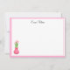 Custom Name Note Card shown in the basic matte white card paper with a Pink border trim and has a pink tulips art print.