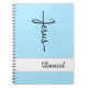 This notebook is shown with a faithful Jesus Cross print and is shown in a light blue color with an accent strip with a custom sample name.