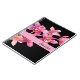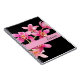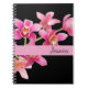 Notebook shown with a black background color with a lovely pink orchid flowers graphic print and a name sample.