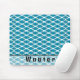 Custom Name Ocean Blue Green White Geo Pattern Mouse Pad