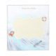 Cute ocean-themed notepad featuring a crab, a life preserver and a note in a bottle.
