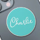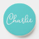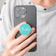 PopSocket featuring your name in white on a turquoise/aqua blue background. You can change colors with the customization tool.