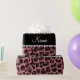 Modern and trendy personalized custom name pastel pink glitter leopard spots pattern (animal print) with a black diamonds stripe (not real diamonds) with hearts and dots personalized with your name gifts or monogram gifts or your initials. Pretty girly leopard print gift ideas.