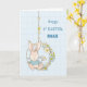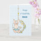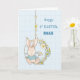 On a baby’s 1st Easter, personalize this adorable card with his name! A bunny is swinging on a vine wreath and is holding a daisy.