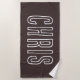 personalized beach towel custom gift, personalized name bath trip towel, custom pool towel for summer, custom beach towel with name, outside birthday vacation trip gift, custom beach towels personalized towel, vacation gift personalized beach towel, custom name towel customized towel, custom towel, bridesmaid groomsman best man gift present, best birthday gift personalized towel, Christmas gift for him, Christmas present for her, chocolate brown and white beach towel, bright easy to read beach towel, fun vacation trip towel, chocolate brown beach towel present