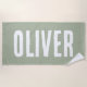 personalized beach towel custom gift, personalized name bath trip towel, custom pool towel for summer, custom beach towel with name, outside birthday vacation trip gift, custom beach towels personalized towel, vacation gift personalized beach towel, custom name towel customized towel, custom towel bridesmaid groomsman gift present, best birthday gift personalized towel, Christmas gift for him, Christmas present for her, sage green and white beach towel, bright easy to read beach towel, fun vacation trip towel, sage green beach towel present