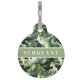 Custom name pet tag is shown in a green camo print, customize and change the pet's name to what you need.