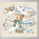 Introducing our Custom Name Pilot Teddy Bear poster! With a little bear flying his airplane, pretty clouds and stars and other airplanes in the sky, this poster brings adventure and playfulness to any room!