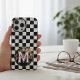 Custom Name Pink Flower Black & White Checkered Case-Mate iPhone Case