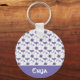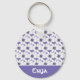 Custom Name Purple flower pattern Button Key Ring