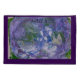 An acrylic abstract painting with the impression of green leaves and purple flowers.