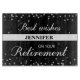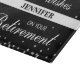 3D looking silver sparkles and words in white, all on a black background. A great Custom Name gift, souvenir, giveaway and party essential to congratulate a man or a woman on their Retirement. A very elegant Congratulations item that you can easily customize.