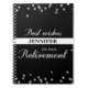 3D looking silver sparkles and words in white, all on a black background. A great Custom Name gift, souvenir, giveaway and party essential to congratulate a man or a woman on their Retirement. A very elegant Congratulations item that you can easily customize.