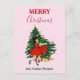 Custom Name Retro Christmas Girl Xmas Tree Pink Holiday Postcard