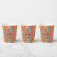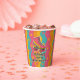 Make your roller skating party unforgettable with these custom paper cups available in 2 sizes and featuring a bold pink skate with rainbow stripes, retro waves, and colorful daisy accents on the background. Personalize them with your girl's name and age for a fun and functional party detail that ties the whole theme together. Ideal table decor for birthday parties at the roller rink or at home.