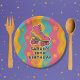 Make your roller skating party unforgettable with these custom paper plates featuring a bold pink skate with rainbow stripes, retro waves, and colorful daisy accents on the background. Personalize them with your girl's name and age for a fun and functional party detail that ties the whole theme together. Ideal table decor for birthday parties at the roller rink or at home.