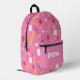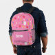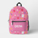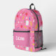 Custom name school supplies backpack. Get ready for back to school in style with our adorable Pink School Supplies Backpack. This fun and functional backpack features a playful design of pencils, erasers, and other school supplies on a pink background, perfect for adding some personality to your daily routine. The roomy main compartment can fit all your essentials, including textbooks, notebooks, and even a laptop, while the front pocket is perfect for smaller items like pens and pencils.