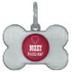 This dog tag with its background of red and in the shape of a bone is a trendy tag for your dog! Customize with your dog's name and your contact information.
