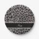 Modern, stylish, chic and trendy personalized custom name silver glitter leopard spots pattern (animal print) with a black diamonds stripe (not real diamonds) with beautiful hearts and dots personalized with your name gifts or monogram gifts or your initials. Pretty girly leopard print gift ideas.